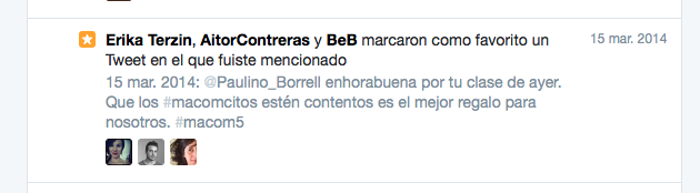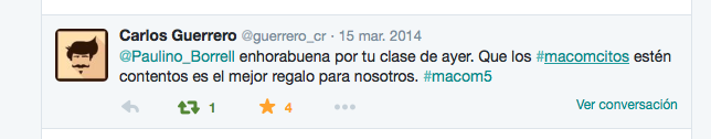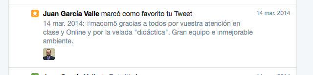 No hay nada más gratificante que a la salida de una clase, cuando se calma el bullicio y consulta el móvil, ver como se ven en éste gestos de aprobación de los participantes por lo que se acaba de ver. Algo que sin duda motiva mucho y recarga las pilas para mejorar en cada experiencia divulgativa.